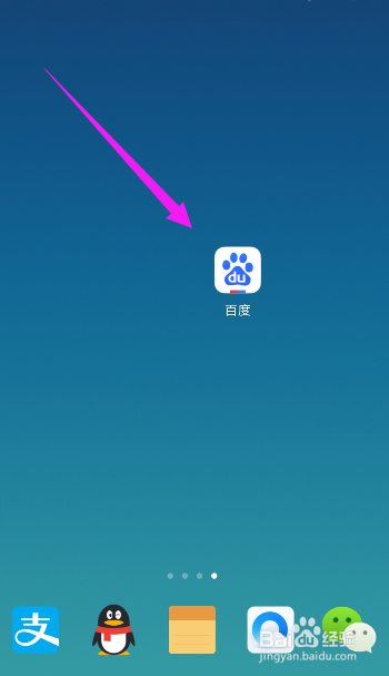 启脱手机,在手机桌面点击我们熟悉的手机百度,如图所示