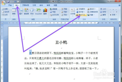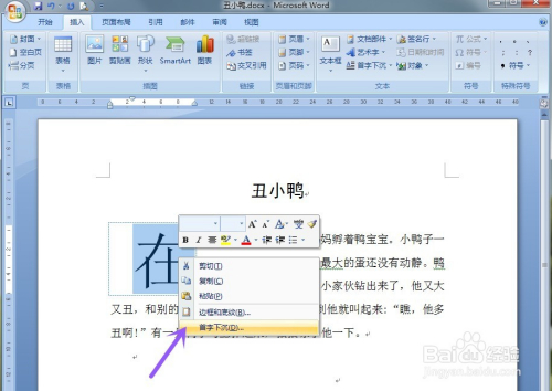 在选中的字鼠标右击,呈现对话框点击首字下沉。