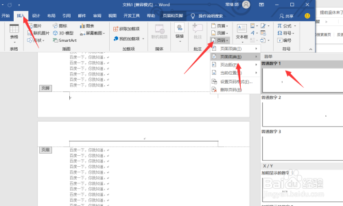 我们点击上方的插入选择页码选择页码,而底端随便插入一个页码的格局即可。