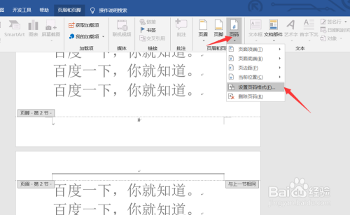 插入持续分隔符之后,我们在需要从头插入页码的那一页,右击选择设置页码格局。
