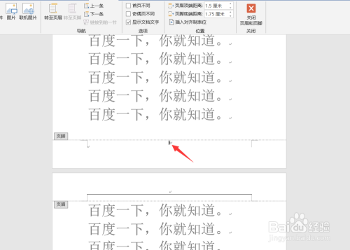 接着我们找到一个页面,双击页眉,或页脚部门,然后就进入了页脚的编纂页面。
