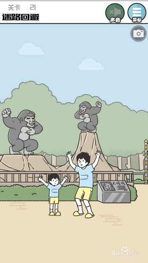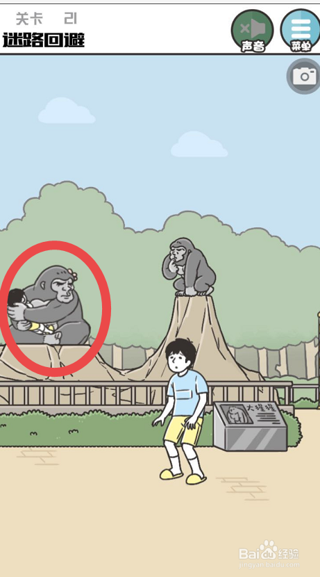 这样游戏人物就会找到本身的小伙伴,大猩猩也找到了他的小猩猩。这样就完当作了神回避2手游第二十一关迷路回避的挑战了。