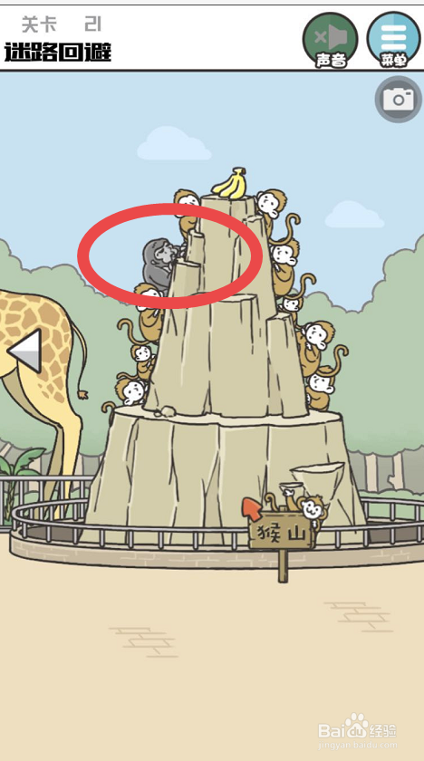 之后会发现吸引过来的所有小动物中不仅有山公,还有一只小猩猩,点击小猩猩。