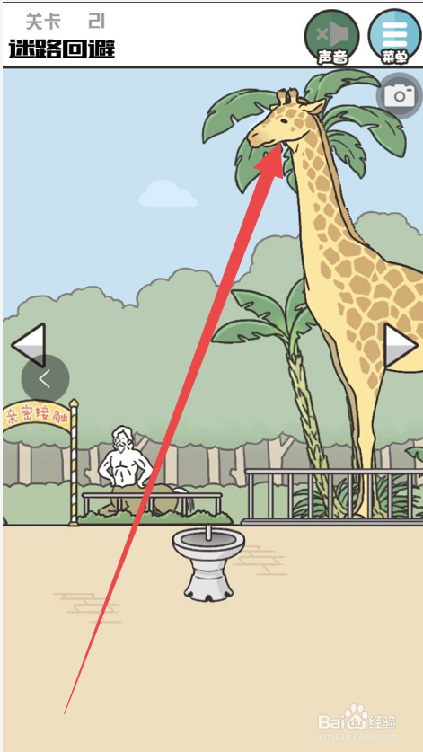 在右侧的页面内可以看见有一只长颈鹿,长颈鹿的头部后面还有一株植物,点击长颈鹿的头部。