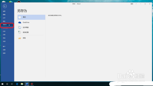 2、此时为第一次保留文档,系统会打开【另存为】界面,在此界面中单击【浏览】选项。