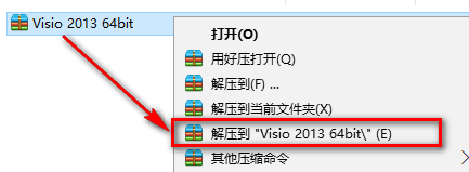下载好安装包后,鼠标右键解压到“Visio 2013”