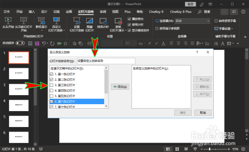 点击“新建”后打开“界说自界说放映”弹窗,我们可以先为本身的自界说放映设置一个名称,然后在左侧选择哪些幻灯片需要放映。