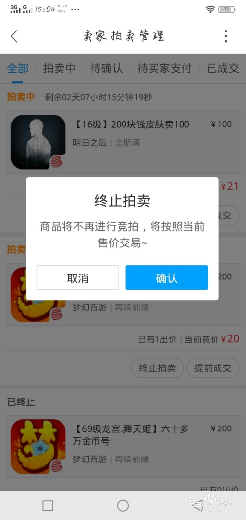 最后点击确认就不成以再竞拍,可以直接以这个价钱出售。