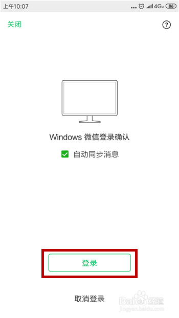 电脑版的微信登岸需要手机端简直认,打开手机端会收到登录提醒,点击【登岸】。