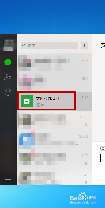 在电脑端当作功登岸微信后在左侧的动静界面找到【文件传输助手】并点击。