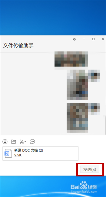 然后在文件传输助手界面把电脑word文档拖进来,点击【发送】选项。