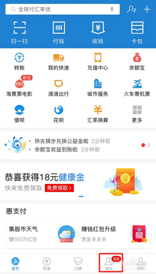 第一步我们登录进本身的支付宝账号,登岸后来到支付宝首页!