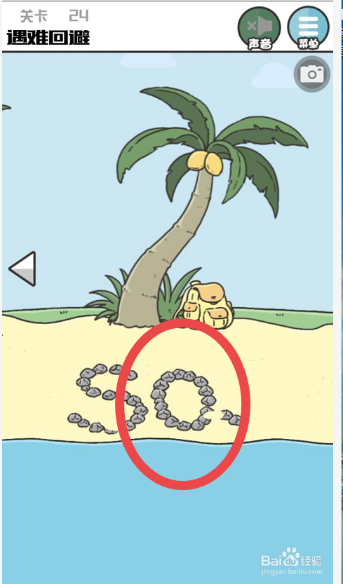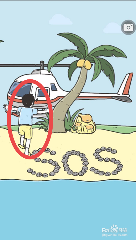 之后在继续点击字母O后面的沙子,多点击几回之后就会发现这些沙子下面也有一个字母S。当SOS都呈现之后就是一个求救旌旗灯号了,之后就会呈现一个直升机。