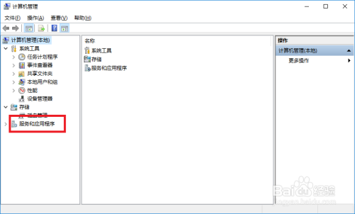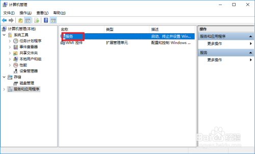 打开计较机办理器对话框中单击办事和应用程序选项。