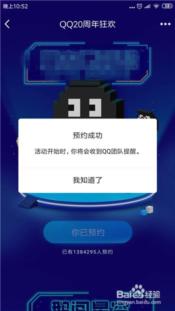 这样就可以预约当作功这个活动,会提醒我们等活动起头时会收到QQ团队的提醒。