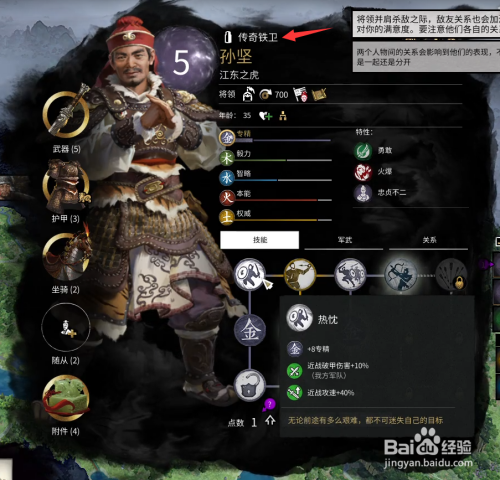 在游戏中孙坚是传奇铁卫,是一个很强的武将,战斗中可以造当作很高的危险。