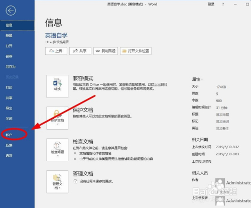 在弹出的“信息”对话框中左边一列找到“账户”单击