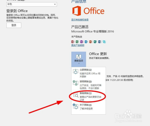 单击这里的“更新选项”就可以鄙人拉菜单中进行更新设置或者查看更新环境了