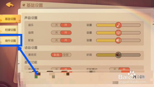 然后在打开的游戏设置界面,点击左边的操作设置选项。如图