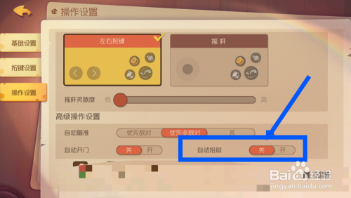 打开操作设置界面后,需要滑动界面,主动拾取设置鄙人面。如图