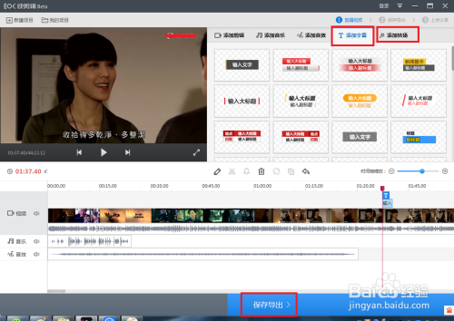 给视频添加了音乐和音效而且编纂校正之后,还可以点击添加字幕和添加转场等结果,然后点击保留导出,然后按提醒保留导出到电脑上就可以了。