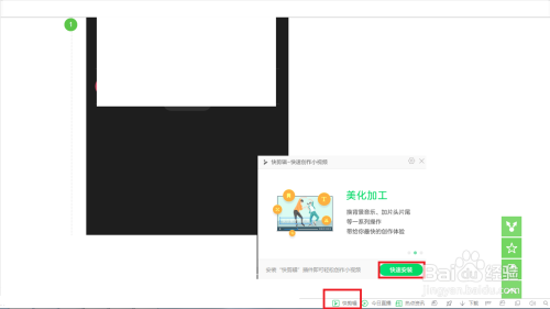 首先下载安装一个视频编纂软件,小编利用的是快剪辑,若是是利用360浏览器,可以点击网页下方的快剪辑——点击快速安装,就可以下载并安装了。