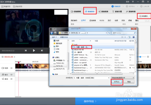 先把要添加的音乐编纂清算保留好在电脑,然后点击快剪辑的添加音乐——当地音乐——选择筹办好的音乐后点击打开,就添加到编纂页面进行编纂了。