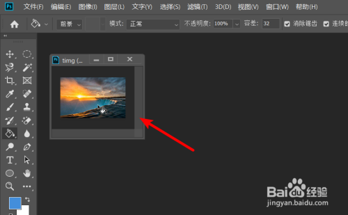 打开电脑中的PS应用后,经由过程CTRL+O键双击需要编纂的照片打开。