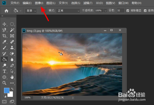 打开编纂的照片后,在上方的菜单栏中点击图像的选项。