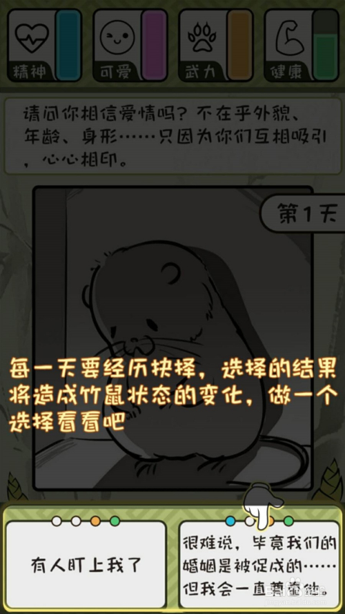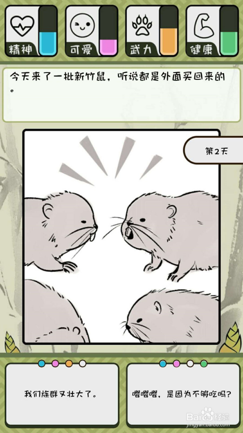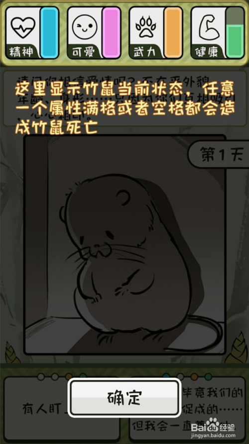 在游戏界面,上面若是有肆意属性满了或者清零,竹鼠就要被吃失落