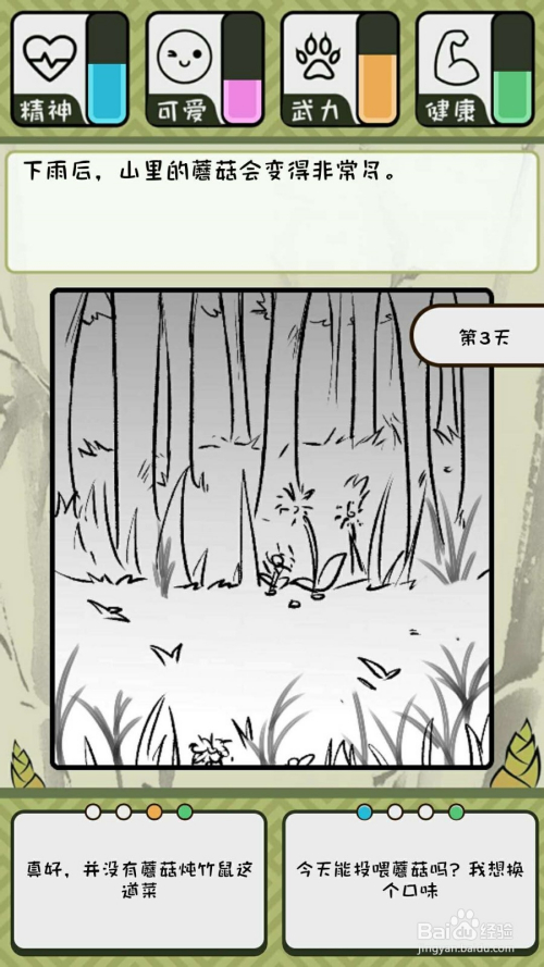 再如图,问的是蘑菇,两个选项,第一个真好,这个会增添的是可爱和削减精力