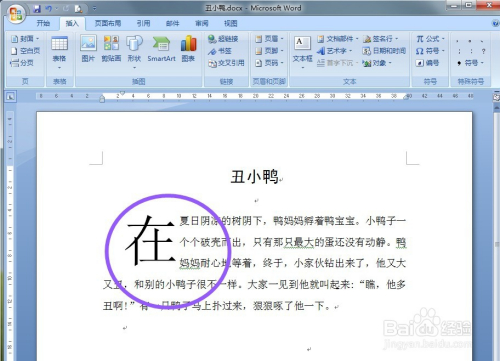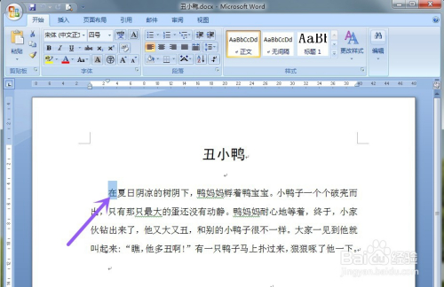 首字选中鼠标右击在呈现的对话框中选择首字下沉。