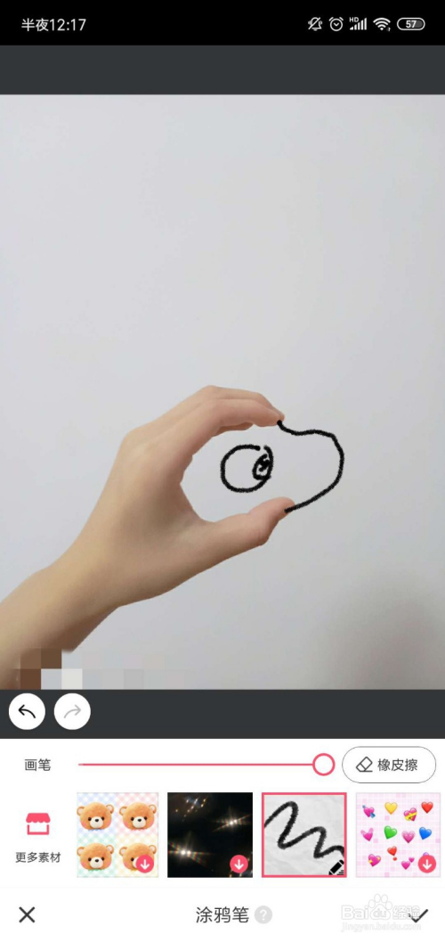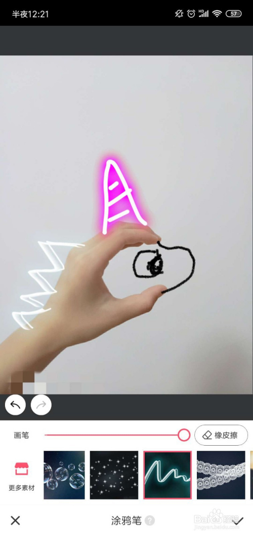 然后我们加上一些特效,素材在涂鸦笔中也有良多,选择一种喜好的涂鸦结果;