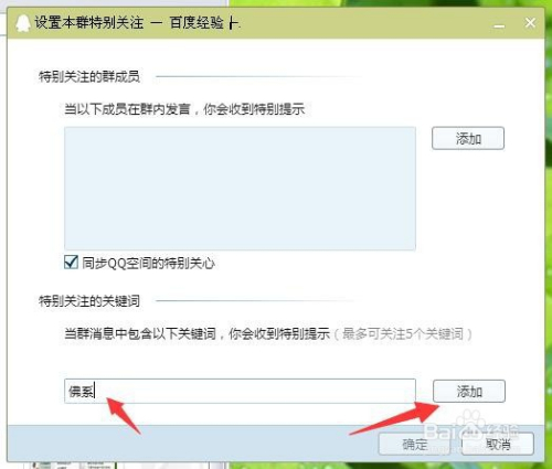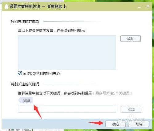 在“设置本群出格存眷”界面,可以添加出格存眷的群当作员及关头字。