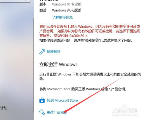 进入到激活界面后,把鼠标滚动到最下面,找到"更改产物密匙",点击它,会弹出密匙的输入窗口,