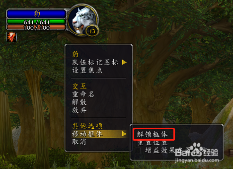 再弹出的右键菜单中,选择“移动框体”,点击“解锁框体”;