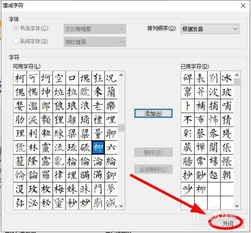 添加完当作字符后,就可以单击“封闭”把“增减字符”对话框封闭了