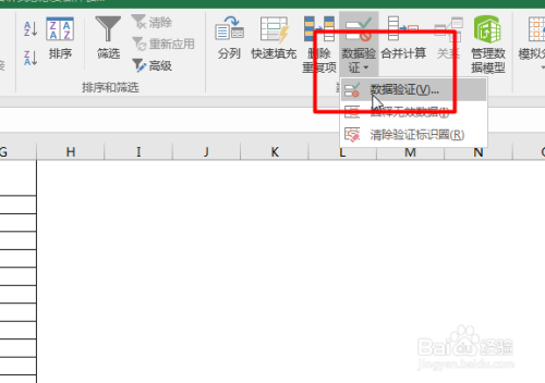 回到最初的一个工作表,接着选择【数据-数据验证】。打开数据验证对话框