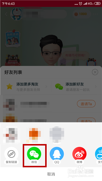 然后会在底部呈现邀请体例,可以添加微信、QQ等,我们点击【微信】。