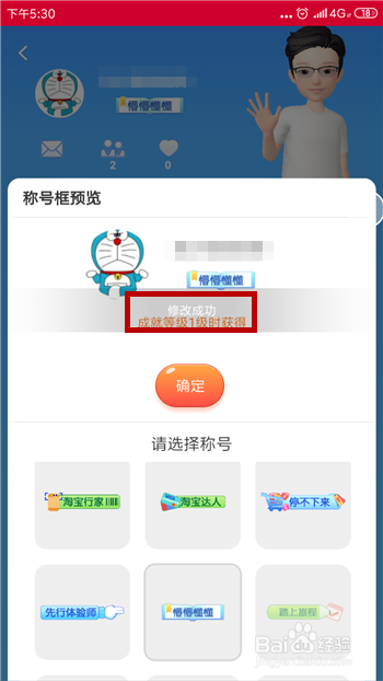 点击之后就会提醒我们【点窜当作功】,这样称号就改换为新的了。