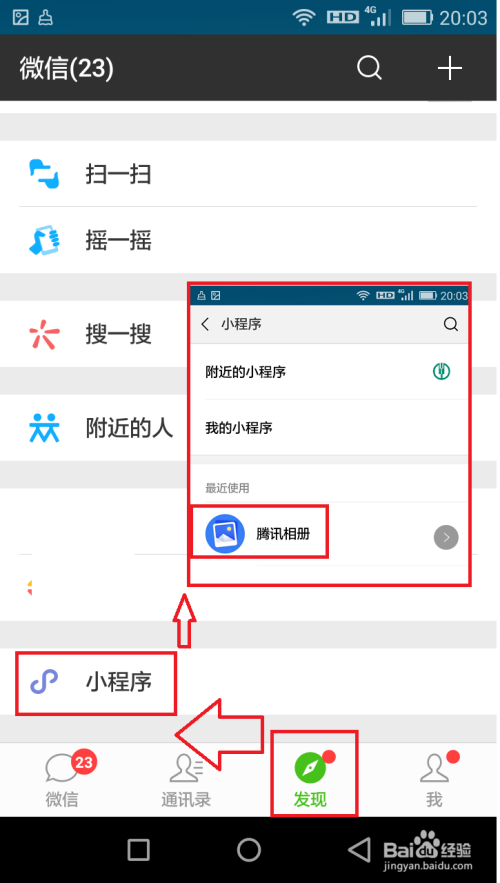 首先在微信的搜刮那边输入:腾讯相册,然后点击打开并利用,若是已经利用过了,直接点击发现——小程序——然后找到腾讯相册点击打开。