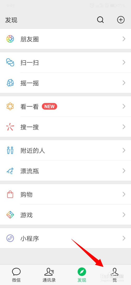 如图:打开微信,点击右下角的“我”;