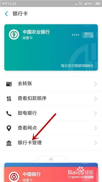 点击之后会进入这张银行卡的具体界面,点击此中的功能【银行卡办理】。