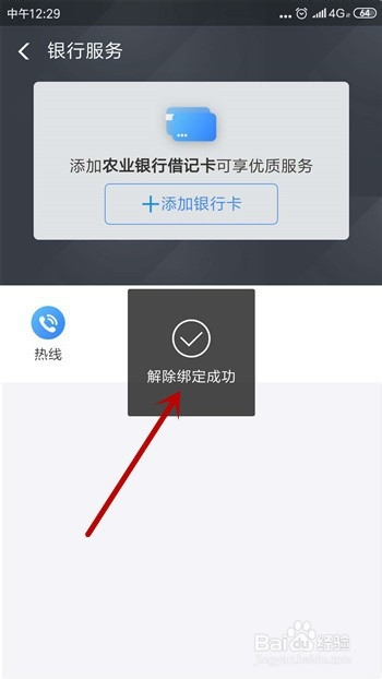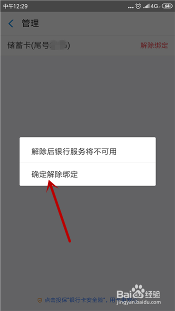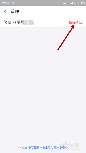 然后就能看到【解除绑定】,点击起头解绑这张银行卡。
