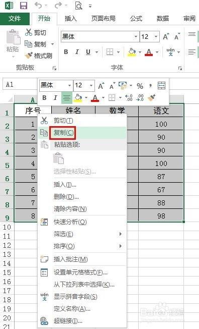 第二步:选择需要横放的表格单击鼠标右键选择“复制”。