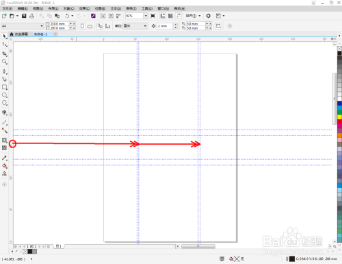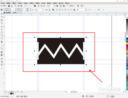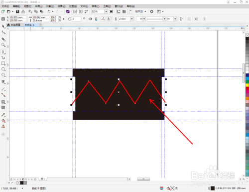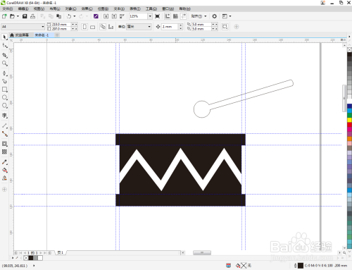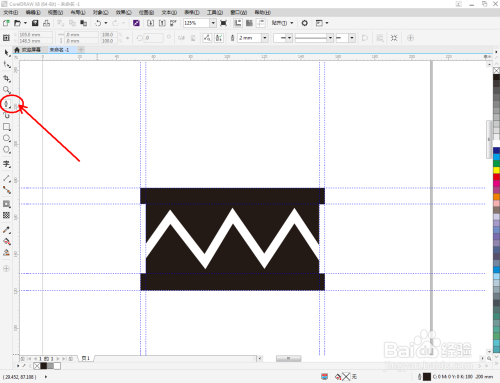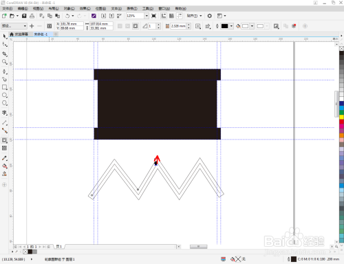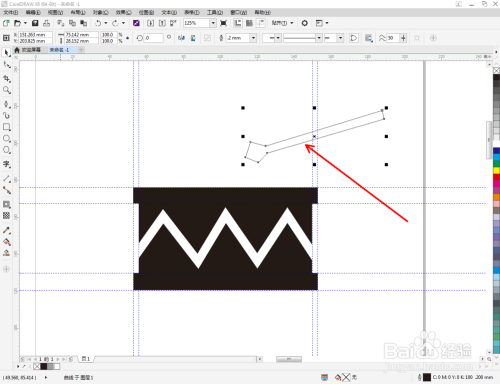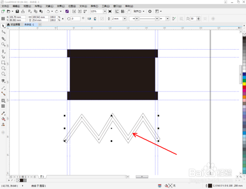 点击【钢笔东西】,按图示绘制出一个线段图案。点击【轮廓图】,对图案进行轮廓操作后,点击鼠标右键-【拆分轮廓图群组】将图案拆分并删除原线段图案(如图所示);