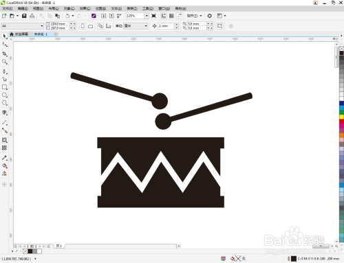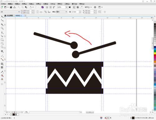 选中鼓锤图案,鼠标左键点击右边色板中的黑色色块,将其填充为黑色。经由过程复制和扭转号令,完当作另一个鼓锤的建造,这样我们的鼓图标便全数建造完当作了。