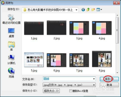 第六步:单击菜单栏中的“另存”,将拼好的图片保留就完当作了。
