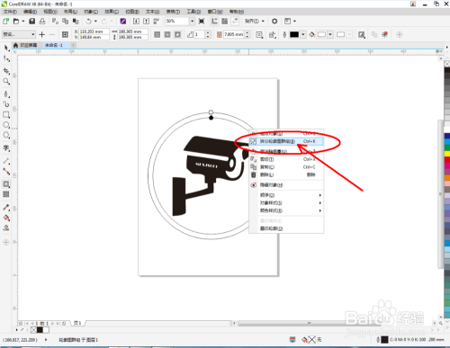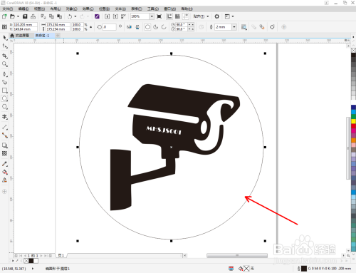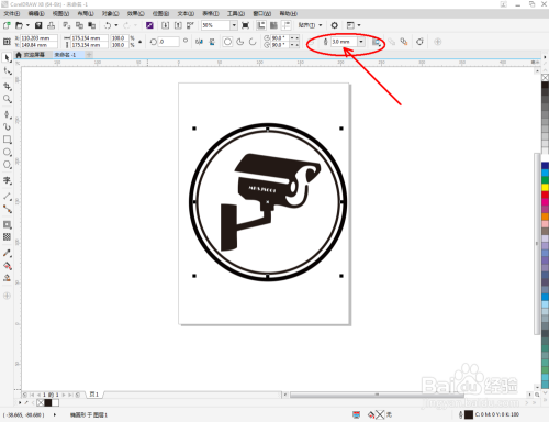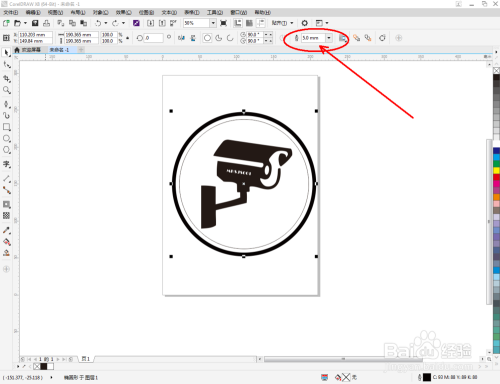点击【卵形东西】,在作图区域绘制一个圆框。点击【轮廓图】对圆形图案进行轮廓后,点击鼠标右键-【拆分轮廓图群组】,将两个图案拆分并别离设置好圆框的轮廓宽度。这样我们整个监控图标便全数建造完当作。