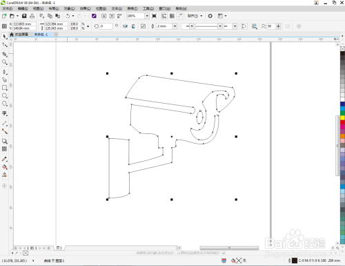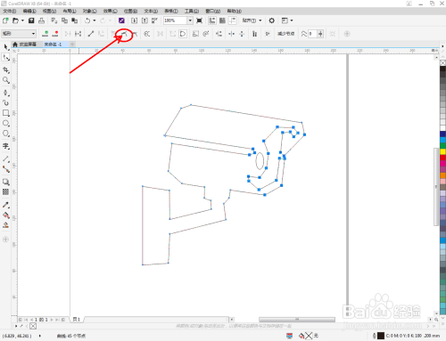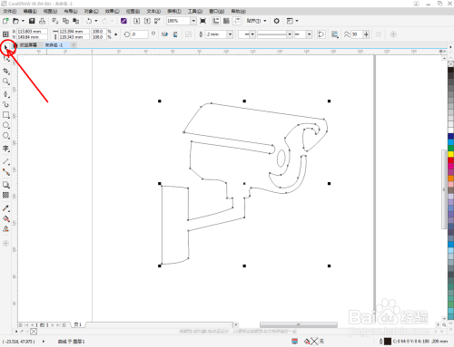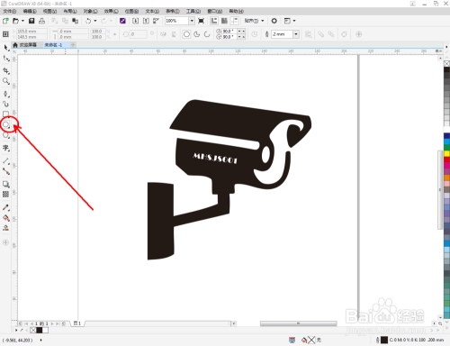 选中多边图案,点击【外形东西】,选中图案上的所有点,点击【转换为曲线】将图案转曲后,按图示调整节制点,完当作整个监控摄像头轮廓图案的绘制(如图所示);